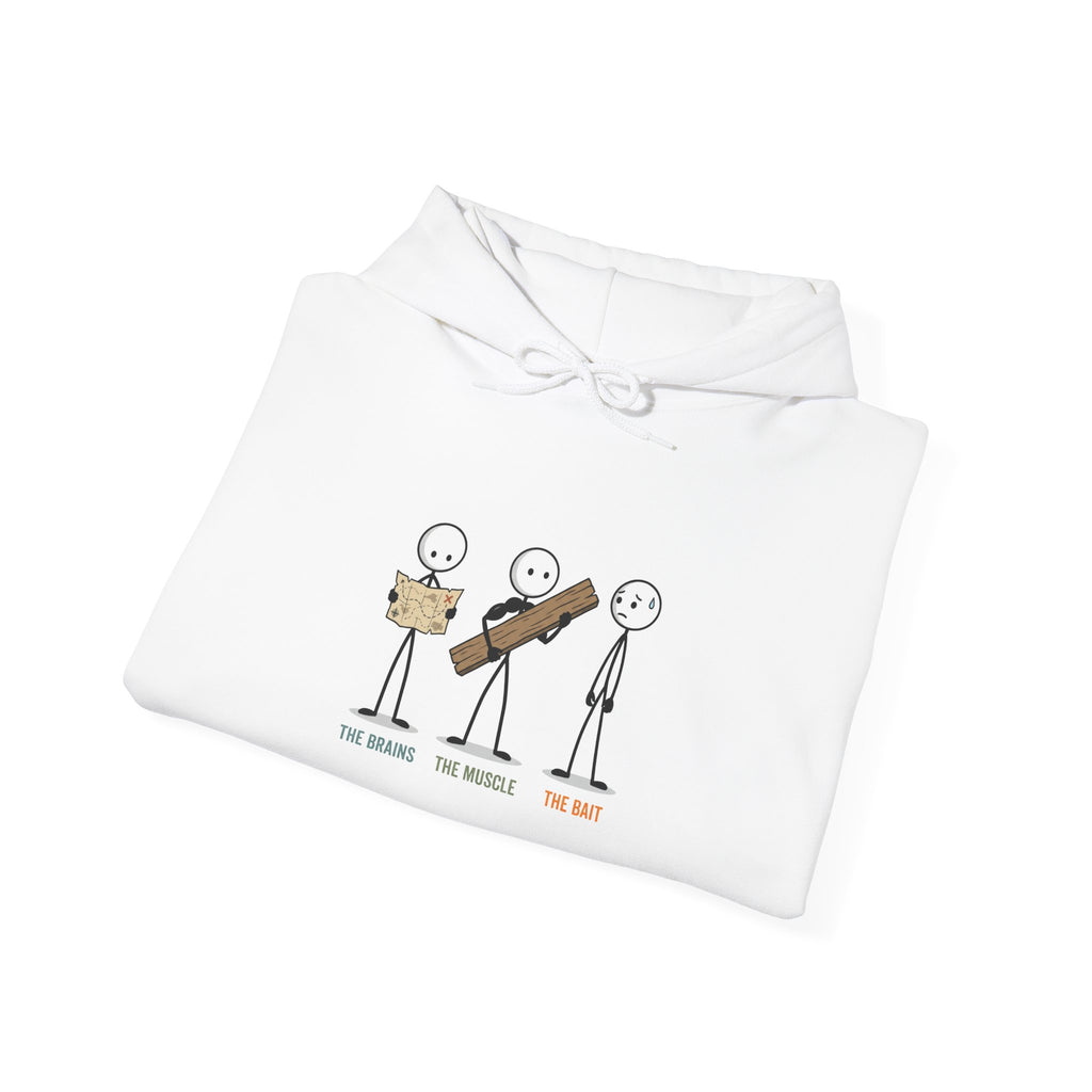 Effective apocalypse survival isn't about friendship; it's about asset optimization. This instructional garment clearly defines the three essential archetypes of any successful scavenging party: The Brains (navigation/strategy), The Muscle (carry weight/DPS), and The Bait (aggro management). It serves as a necessary reality check for your group. If you don't know which role you play, you're probably the one on the right. Wear this to establish the hierarchy early—before the zombies start deciding who tastes the slowest.