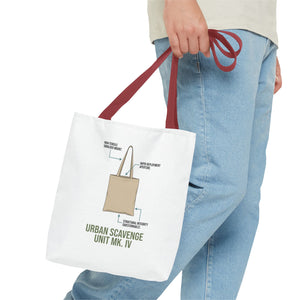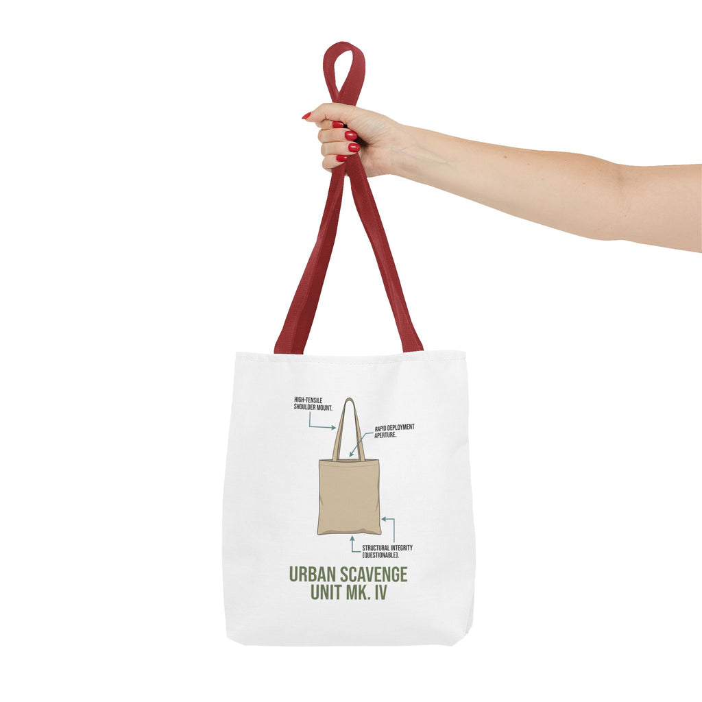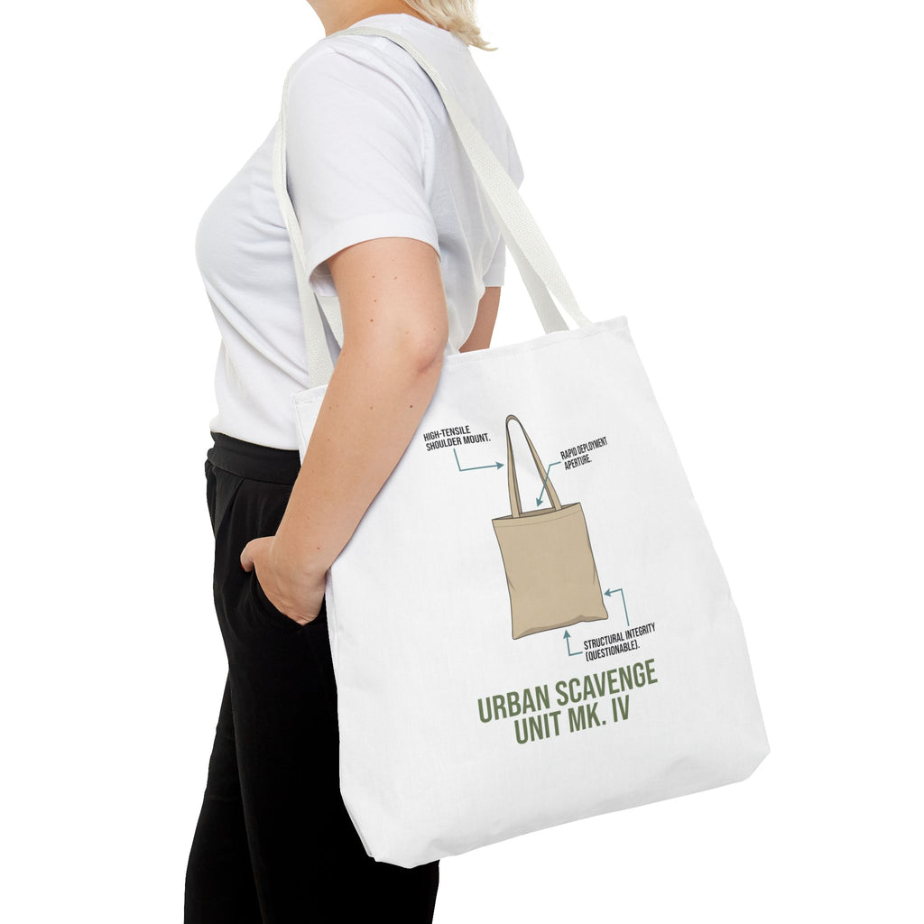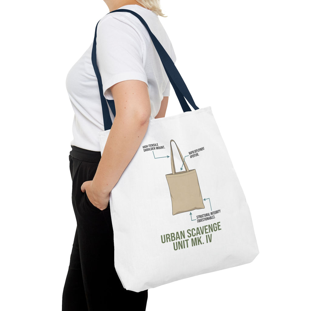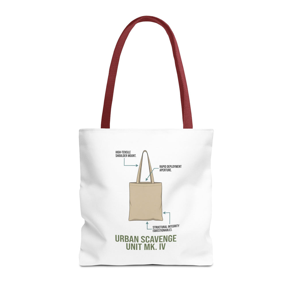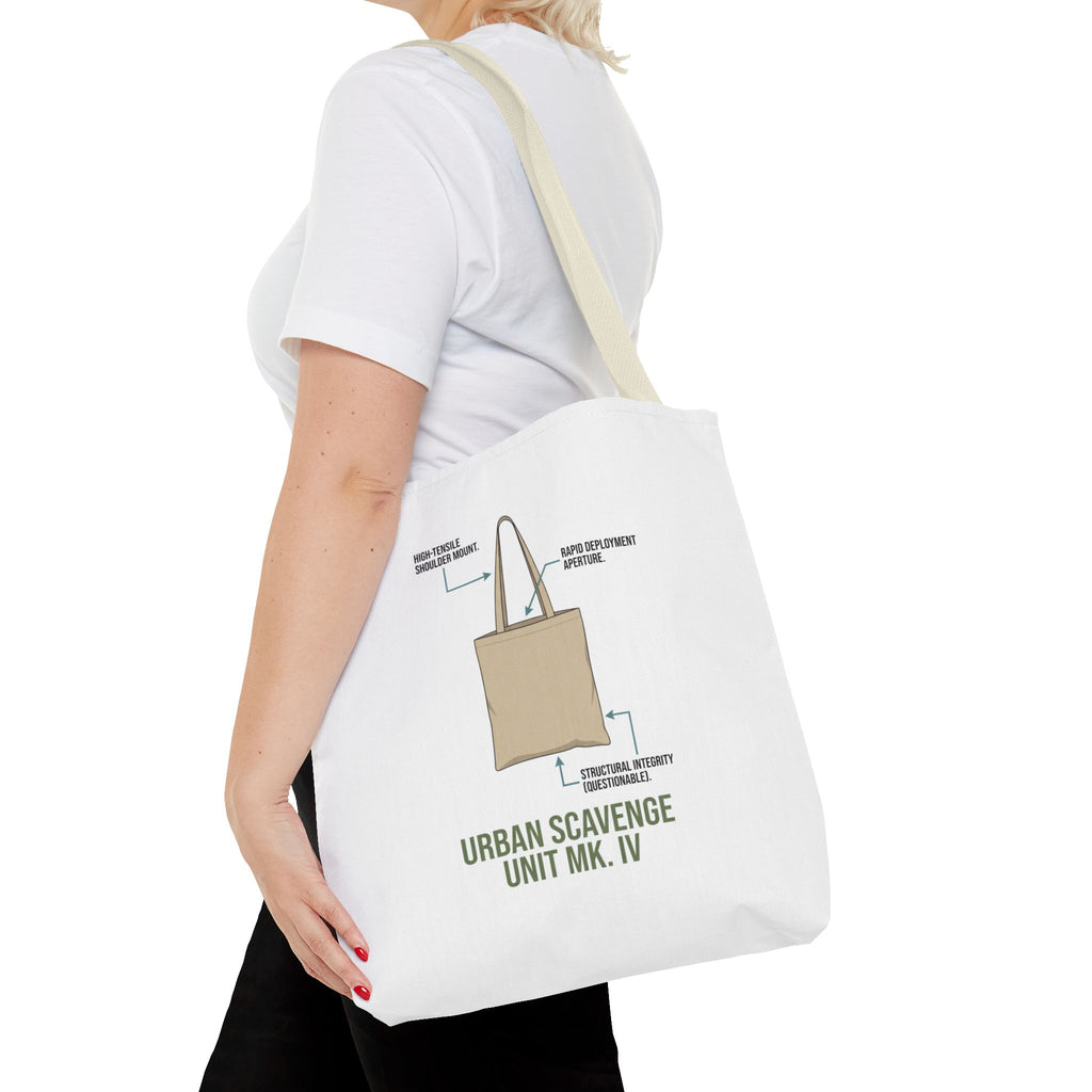 Civilians call it a "tote bag." We call it a tactical resource containment system. This advanced piece of kit upgrades your scavenging run by applying military-grade terminology to a standard canvas sack. Featuring a "High-Tensile Shoulder Mount" (strap) and a "Rapid Deployment Aperture" (big hole), it makes carrying groceries feel like a black-ops mission. The "Mk. IV" designation implies that we have learned significant lessons from the catastrophic failures of Units I through III. Note the disclaimer regarding "Structural Integrity (Questionable)"—load at your own risk.